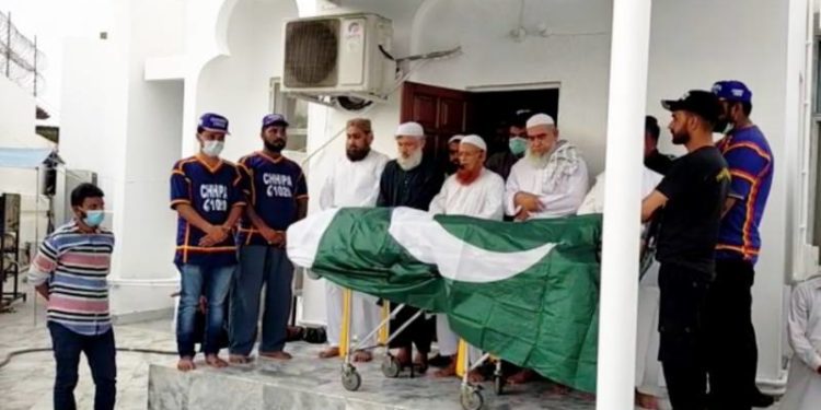 سابق صدر ممنون حسین کی نماز جنازہ کراچی کی مسجد سلطان میں ادا کردی گئی۔ سابق صدر کے جسد خاکی کو قومی پرچم ميں لپیٹا گیا تھا۔