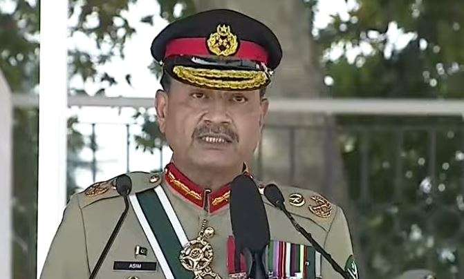فیلڈ مارشل نے خبردار کیا کہ بھارتی حکام کی فوری الزامات تراشی اور غیر جانبدارانہ تحقیقات سے کنارہ کشی تشویش ناک ہے، اور انہوں نے کہا کہ بھارت کی حکومت نے بعض معاملات کو دہشت گردی کے سیاسی رنگ میں پیش کرنے کی کوشش کی۔ اس کے باوجود پاکستان نے اپنی پیشہ ورانہ مہارت سے نہ صرف قومی بلکہ عالمی سطح پر بھی عزت و وقار حاصل کیا ہے، اور نوجوان طبقے میں افواجِ پاکستان کے تئیں اعتماد مضبوط ہوا ہے۔انہوں نے کشمیری مظالم اور فلسطین کے انسانی المیے پر گہری تشویش کا اظہار کرتے ہوئے کہا کہ دونوں معاملات انسانیت کے لیے بدنما داغ ہیں اور مسئلہ کشمیر کو اقوامِ متحدہ کی قراردادوں کے مطابق حل کیا جانا چاہیے۔ عاصم منیر نے اس عزم کا اعادہ کیا کہ پاکستان کشمیریوں کی سیاسی، سفارتی اور اخلاقی حمایت جاری رکھے گا، اور غزہ میں انسانی بنیادوں پر امداد و بحالی کے لیے بین الاقوامی فورمز پر آواز اٹھانا جاری رکھے گا۔آرمی چیف نے بین الاقوامی تعلقات پر بھی بات کی، ان کا کہنا تھا کہ پاکستان کی مسلح افواج دنیا بھر میں امن مشنز میں نمایاں کردار ادا کرتی آرہی ہیں، اور سعودی عرب کے ساتھ حالیہ اسٹریٹجک دفاعی معاہدہ علاقائی استحکام کے لیے اہم سنگِ میل ہے۔ انہوں نے چین، ایران اور دیگر مسلم ممالک کے ساتھ مضبوط تعاون کی اہمیت پر زور دیا اور امریکی صدر ڈونلڈ ٹرمپ کی قیامِ امن کی کوششوں کو قابلِ ستائش قرار دیا۔فیلڈ مارشل نے شہداء اور ان کے اہلِ خانہ کو خراجِ تحسین پیش کیا اور کہا کہ قوم ان قربانیوں کی ہمیشہ شکر گزار رہے گی۔ انہوں نے نئے کیڈٹس کو مبارکباد دیتے ہوئے کہا کہ پی ایم اے سے فارغ التحصیل ہونے والوں پر قومی فخر ہے اور وہ دنیا کی باوقار افواج کے رکن بن کر وطن کی خدمت کریں گے۔آرمی چیف نے واضح کیا کہ پاکستان کا دفاعی نظریہ "قابلِ اعتماد ضبطِ کار” اور مسلسل تیارئ پر مبنی ہے ، اگر دوبارہ جارحیت کی کوشش کی گئی تو دشمن کو توقع سے کہیں زیادہ سخت جواب ملے گا۔ انہوں نے عالمی برادری سے اپیل کی کہ تنازعات کو تشدد کے ذریعہ سیاسی مقاصد کے لیے استعمال نہ کیا جائے، کیونکہ آئندہ کشیدگی کے ذمے دار ممالک ہی ہوں گے جنہوں نے خطے میں عدم استحکام پیدا کیا۔اپنے اختتامی کلمات میں انہوں نے کیڈٹس سے کہا کہ پیشہ ورانہ مہارت، نظم و ضبط اور اخلاقی قیادت کو اپنا نصب العین بنائیں، عوام سے تجدیدِ عہد کی اپیل کی اور قرآنِ مجید کی سورۃِ الصف کی آیت کا حوالہ دیتے ہوئے کہا: "خدا ان لوگوں کو پسند کرتا ہے جو اس کی راہ میں صف باندھ کر لڑتے ہیں، گویا کہ وہ سیسہ پلائی ہوئی دیوار ہیں۔”فیلڈ مارشل سید عاصم منیر نے آخر میں کمیشن حاصل کرنے والے کیڈٹس کو دلی مبارکباد دی
