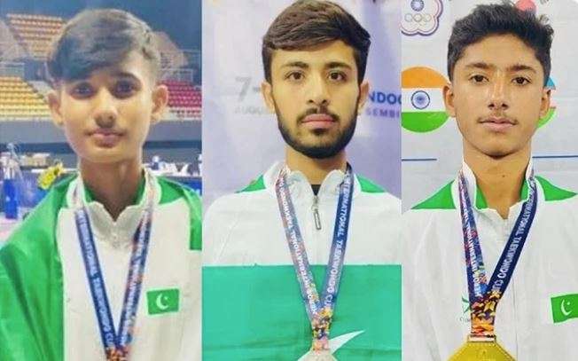 پاکستان کی تائیکوانڈو ٹیم نے ملائیشیا میں منعقدہ ساتویں ہیروز انٹرنیشنل تائیکوانڈو چیمپئن شپ 2025ء میں شاندار کارکردگی دکھاتے ہوئے دنیا کو حیران کر دیا۔ قومی کھلاڑیوں نے مجموعی طور پر 12 سونے اور 4 چاندی کے تمغے جیت کر سبز ہلالی پرچم کو سربلند کر دیا۔ ٹیم کے مایہ ناز کھلاڑی میاں غفران علی نے نہ صرف 2 گولڈ اور 2 سلور میڈلز جیتے بلکہ بہترین کوچ کا ایوارڈ بھی اپنے نام کیا۔ لاہور کی طیّبہ اشرف تین طلائی تمغوں کے ساتھ چمکیں، جبکہ سنبل خان نے 2 گولڈ اور 1 سلور میڈل حاصل کر کے ملک کا نام روشن کیا۔ فیصل آباد کے حافظ ناصر بشیر نے 90 کلو فائٹ میں گولڈ جیتا، لاہور کے نبیل خالد نے 2 گولڈ اور 1 سلور اپنے نام کیا، اور شاہروز ارشد نے 80 پلس کلو فائٹ میں سونے کا تمغہ جیتا۔