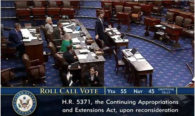ریپبلکن کی جانب سے پیش کی گئی حکومت کے شٹ ڈاؤن کو روکنے کی تجویز سینیٹ میں ناکام ہو گئی، جس کے حق میں صرف 55 ووٹ آئے جبکہ مخالفت میں 45 ووٹ ہوئے۔ ضرورت اس بات کی تھی کہ 60 ووٹ حاصل ہوں تاکہ شٹ ڈاؤن ٹالا جا سکے۔ بی بی سی کی رپورٹ کے مطابق امریکی حکومت کے بڑے حصے کے اب صرف چند گھنٹوں میں فنڈنگ ختم ہونے کے بعد شٹ ڈاؤن کی طرف بڑھنے کا امکان ہے۔ رپورٹر اینا فیگائے کے مطابق کیپیٹل ہل پر آج 10 گھنٹے گزارے گئے، لیکن اس دوران کسی اہم پیش رفت کا امکان نہیں ہوا۔ ریپبلکن اور ڈیموکریٹس اب بھی حکومت کو کھلا رکھنے کے معاہدے کے قریب نہیں آئے۔ شٹ ڈاؤن کے آغاز کے بعد راہداریوں میں خاموشی چھا گئی ہے اور قانون ساز، عملہ اور صحافی اپنے گھروں کو واپس جا رہے ہیں۔