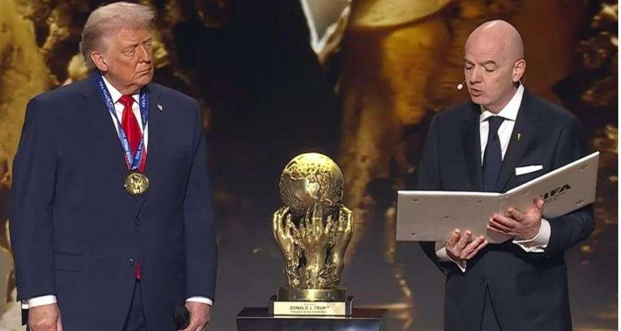 فٹبال کی عالمی تنظیم فیفا نے امن کے فروغ میں نمایاں کوششوں کے اعتراف میں امریکی صدر ڈونلڈ ٹرمپ کو اپنے پہلے ’’فیفا پیس پرائز‘‘ سے نواز دیا، ایک ایسا اعزاز جو عالمی سطح پر غیر معمولی امن کوششوں کے اعتراف کے لیے قائم کیا گیا ہے۔ خبر رساں اداروں کے مطابق یہ اعزاز آئندہ برس امریکا، کینیڈا اور میکسیکو میں مشترکہ طور پر منعقد ہونے والے فٹبال ورلڈ کپ کی ڈراز کی تقریب کے موقع پر دیا گیا، جبکہ واشنگٹن میں منعقدہ ایک خصوصی تقریب میں فیفا کے صدر جیانی انفینٹینو نے صدر ٹرمپ کو یہ ایوارڈ پیش کیا۔ فیفا کی جانب سے گزشتہ ماہ ہی اس منفرد ایوارڈ کا اعلان کیا گیا تھا، جس کا مقصد اُن شخصیات کو خراجِ تحسین پیش کرنا ہے جنہوں نے دنیا میں امن، مکالمے اور تنازعات کے خاتمے کے لیے نمایاں کردار ادا کیا ہو۔ ایوارڈ وصول کرنے کے بعد اپنے خطاب میں صدر ٹرمپ نے اسے اپنی زندگی کے عظیم ترین اعزازات میں سے ایک قرار دیا۔ انہوں نے دعویٰ کیا کہ ان کی کوششوں کے نتیجے میں لاکھوں زندگیاں محفوظ ہوئیں اور متعدد ممکنہ جنگوں کو شروع ہونے سے پہلے ہی روک دیا گیا۔ اُن کا کہنا تھا کہ کانگو اور پاک بھارت کشیدگی جیسے حساس معاملات میں بھی بروقت اقدامات کیے گئے، جس سے دنیا ایک بڑے بحران سے بچ گئی۔